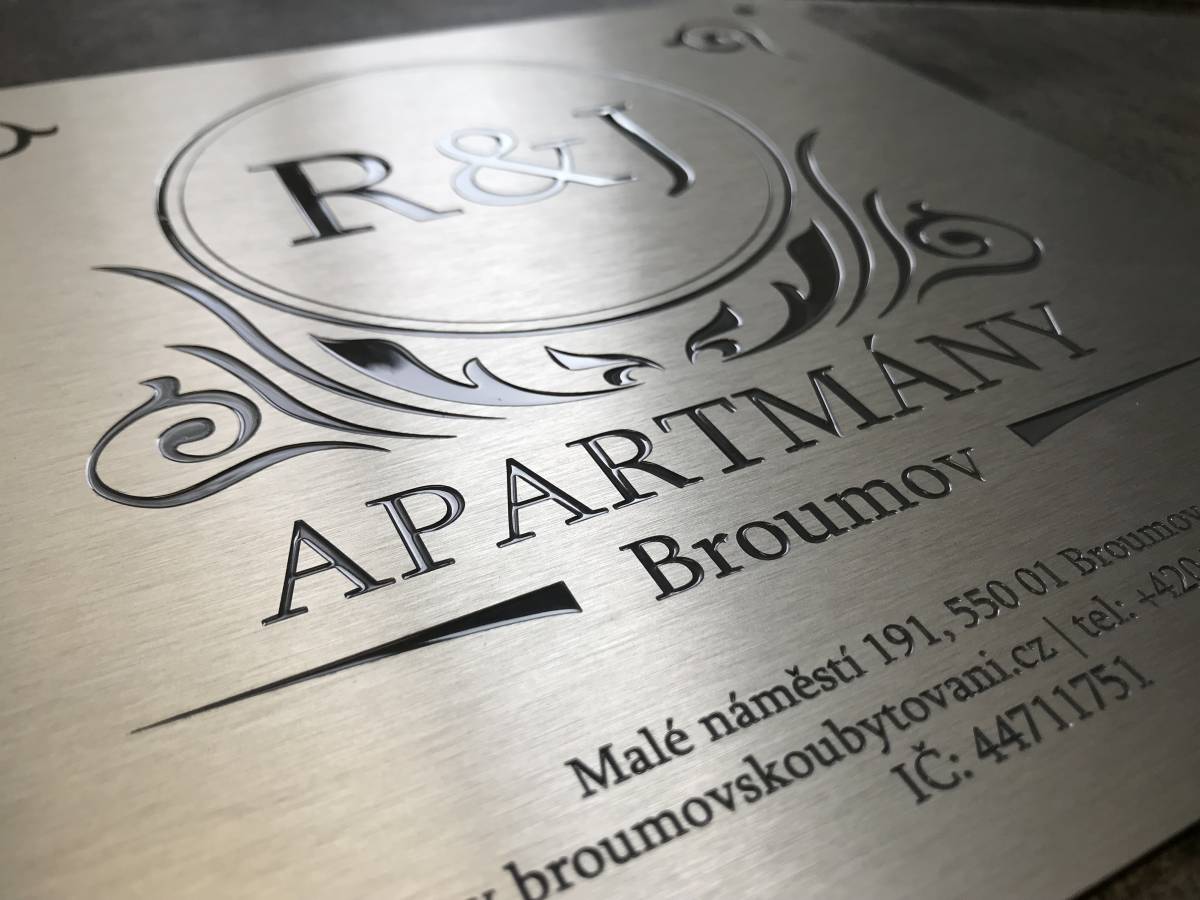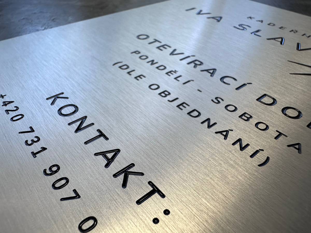 Kovové cedule vyrábíme od jednoho kusu a dokážeme připravit jakýkoliv rozměr. Texty a loga na hliníkové cedule frézujeme do hloubky a následně je zalijeme třísložkovou odolnou barvou. Na frézované cedule poskytujeme prodlouženou záruku 5 let.
